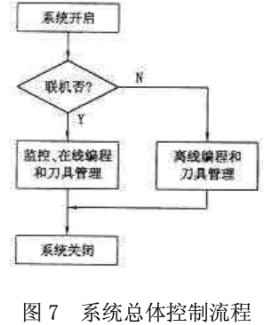 系統(tǒng)的總體控制流程如圖7所示。系統(tǒng)開啟,上位機(jī)與控制機(jī)、沖床聯(lián)機(jī)后,即可進(jìn)行沖床監(jiān)控,同時進(jìn)行在線編程刀具管理;也可單獨進(jìn)行離線編程和刀具管理。