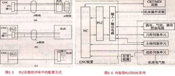 (3) PLC在電氣控制柜中,而輸入/輸出接口在沖床一側(cè),如圖3.5(c)所示。這種配置方式使CNC與機(jī)床接口的電纜大為減少。