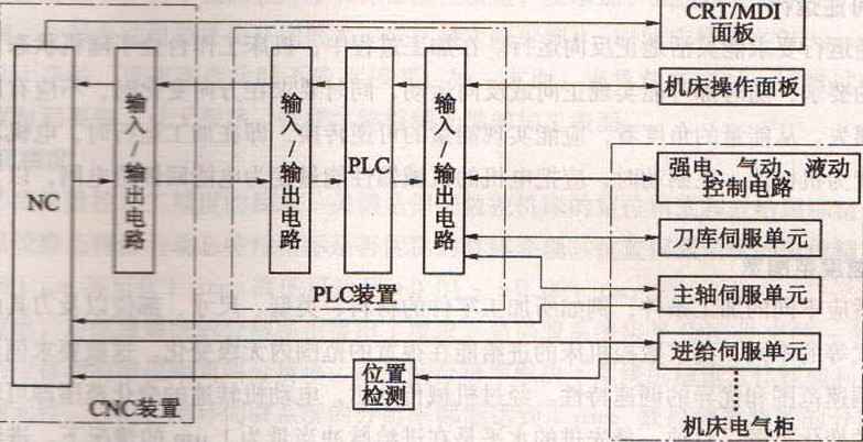 內(nèi)裝型PLC從屬于CNC裝置,PLC與NC間的信號(hào)傳送在CNC裝置內(nèi)部即可實(shí)現(xiàn)。