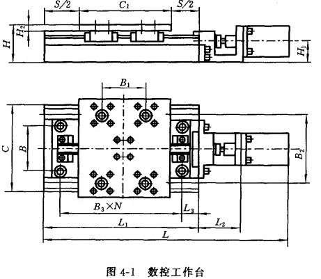 數(shù)控工作臺是數(shù)控沖床機械中的一種附件。如圖所示,將兩個數(shù)控工作臺組裝在一起后,可以構(gòu)成一臺X-Y工作臺,實現(xiàn)兩個坐標(biāo)的定位和連續(xù)軌跡運動。也可以把數(shù)控工作臺看成數(shù)控沖床的一個進(jìn)給運動部件,使其執(zhí)行某一個固定坐標(biāo)系的進(jìn)給運動。數(shù)控工作臺是由底座、導(dǎo)軌、滾珠絲杠螺母副、電機座、絲枉支承機構(gòu)、拖板、行程開關(guān)、防護(hù)翠等部件組成的。數(shù)控工作臺的裝配完成后,姿求運動平穩(wěn);拖板運行到不同位置時,空載推動力一致拖板移動的直線性、拖扳平面與移動方向的平行度、拖扳平面與底座底面的平行皮都必須符合規(guī)定的技術(shù)指標(biāo)。拆裝前后要進(jìn)行檢查登記。