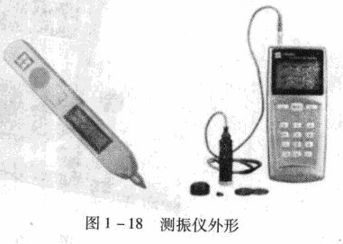 測(cè)振儀是振動(dòng)檢測(cè)中最常用、最基本的儀器,它將測(cè)振傳感器輸出的微弱信號(hào)放大、變換、積分、檢波后,在儀器儀表或顯示屏上直接顯示被測(cè)設(shè)備的振動(dòng)值大小。為了適應(yīng)現(xiàn)場(chǎng)測(cè)試的要求,測(cè)振儀一般都做成便攜式與筆式測(cè)振儀,測(cè)振儀外形如圖1 -18所示。