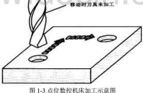 a 點位控制只要求控制機床的移動部件從某一位置移動到另一位置的準(zhǔn)確定位,對于兩位置之間的運動軌跡不作嚴(yán)格要求,在移動過程中刀具不進(jìn)行切削加工,如圖1-3所示。