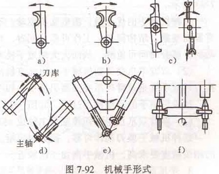 1.數(shù)控沖床機(jī)械手的形式與種類在自動(dòng)換刀數(shù)控沖床中,機(jī)械手的形式也是多種多樣的,常見的有如圖7-92所示的幾種形式: